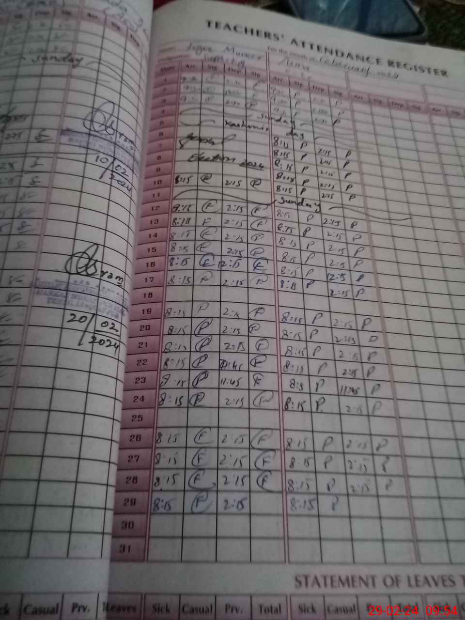 | Leave | Duty | Absent | Maternity | Medical | Ex- Pak |