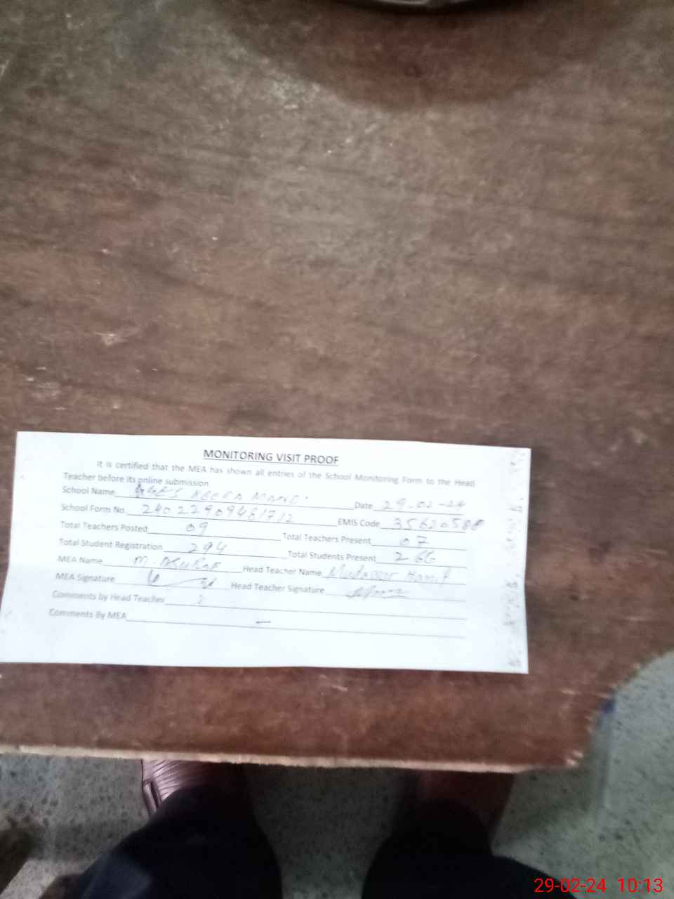 | Certified that this School was Inspected by the Undersigned MEA/DMO Today and the Information Stated Above is as Per Record. | |||||