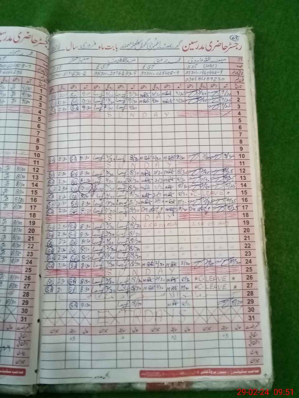 | CNIC | Full Name | Designation | R/C | Absence During Last Calender Month |