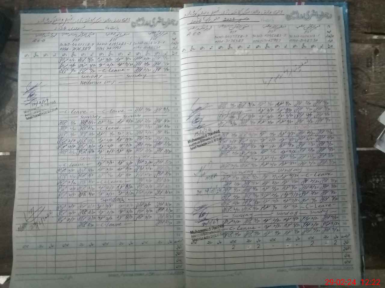 | CNIC | Full Name | Designation | R/C | Absence during last cal. month |