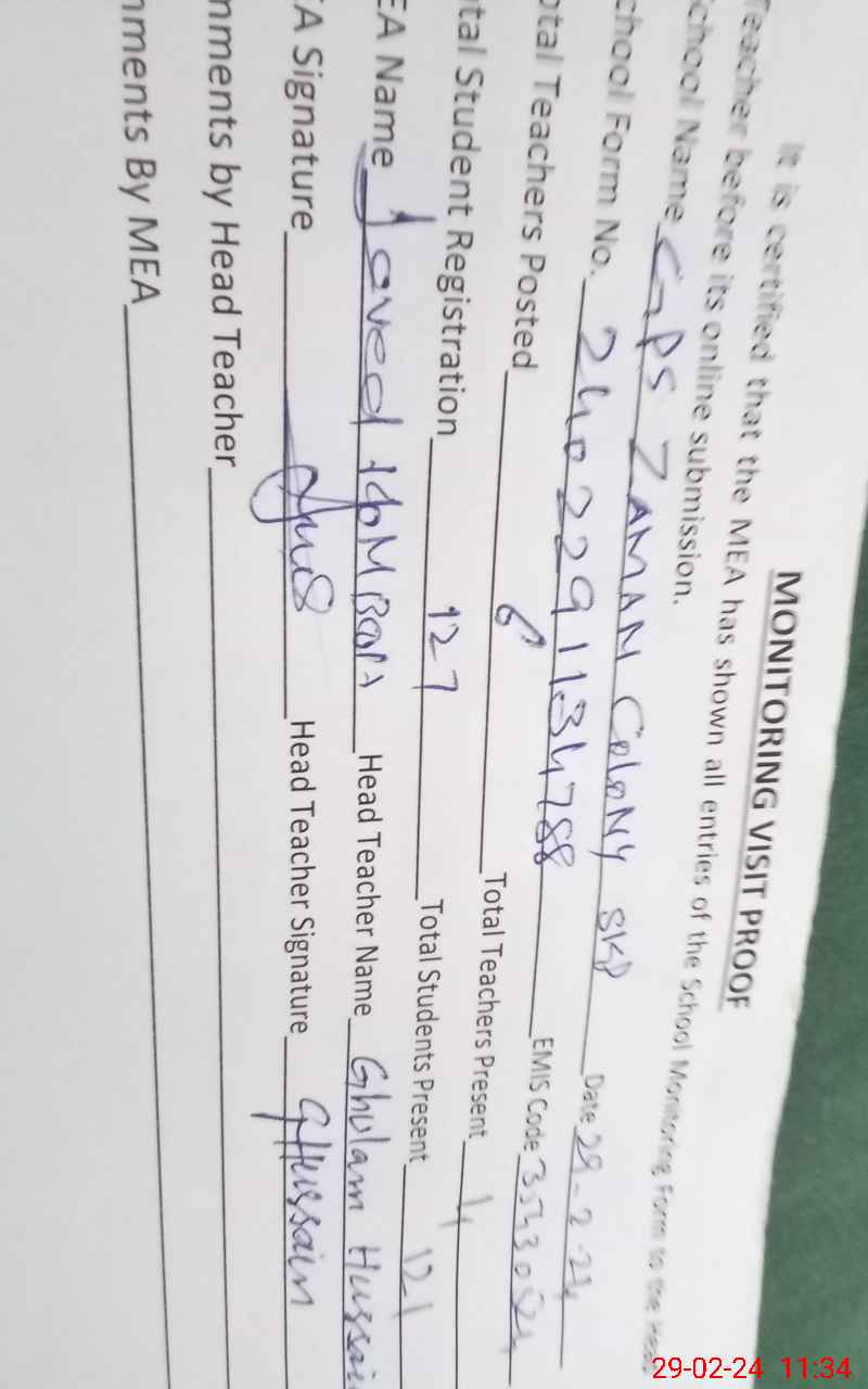 | EMIS Code: 35430524 | Name of School: GPS ZAMAN COLONY SKP | |||