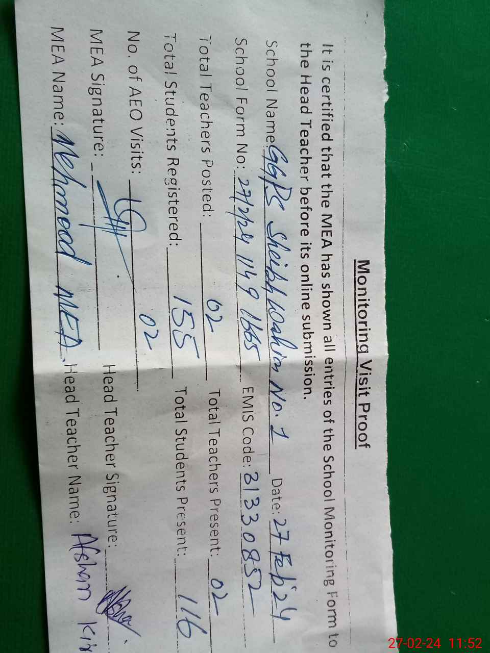 | EMIS Code: 31330852 | Name of School: GGPS SHEIKH WAHIN NO. 1 | |||