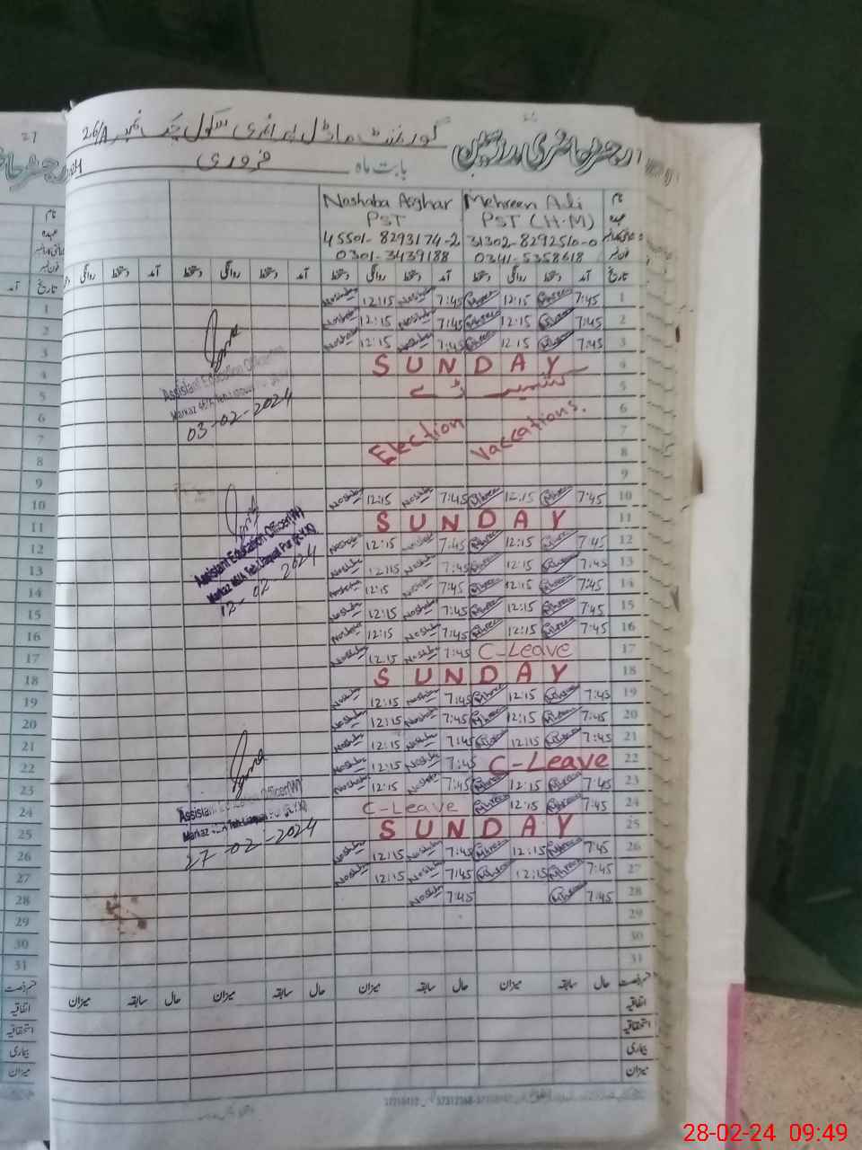 | CNIC | Full Name | Designation | R/C | Absence During Last Calender Month |