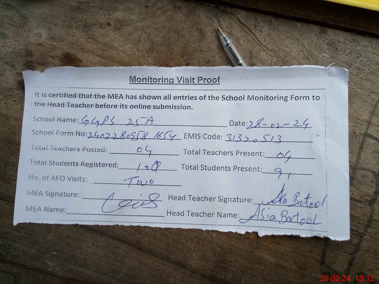 | EMIS Code: 31320513 | Name of School: GGPS CHAK NO.25/A | |||
