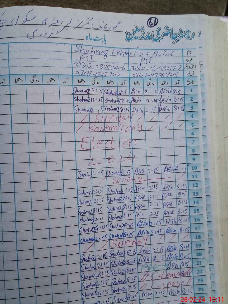 | Name: AS**** BA**** Designation: (School Headmaster's/Headmistress's) PST Phone/Cell Number: 03**** |