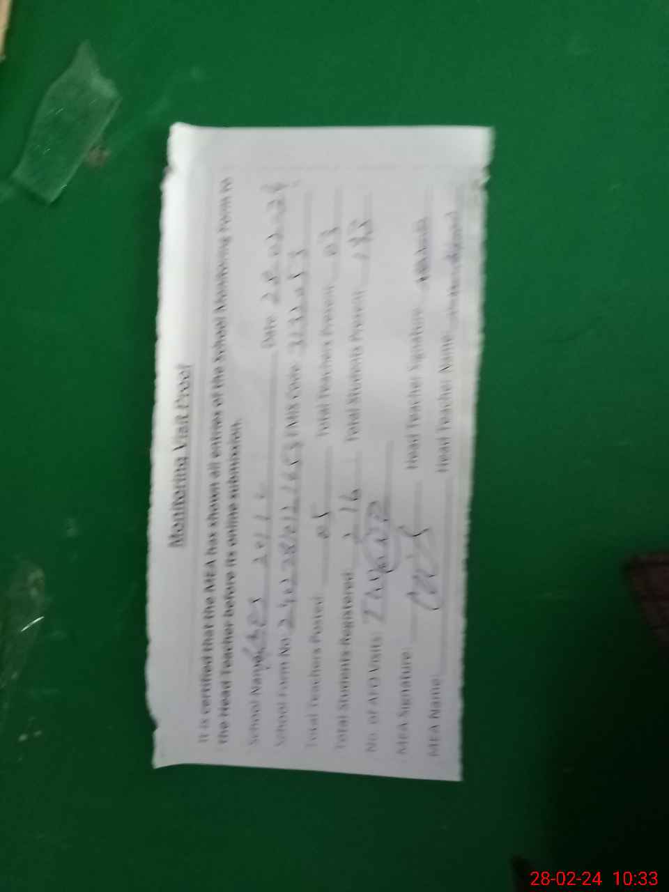 | Attendance Register | Head Teacher | MEA with School | Visit Proof |