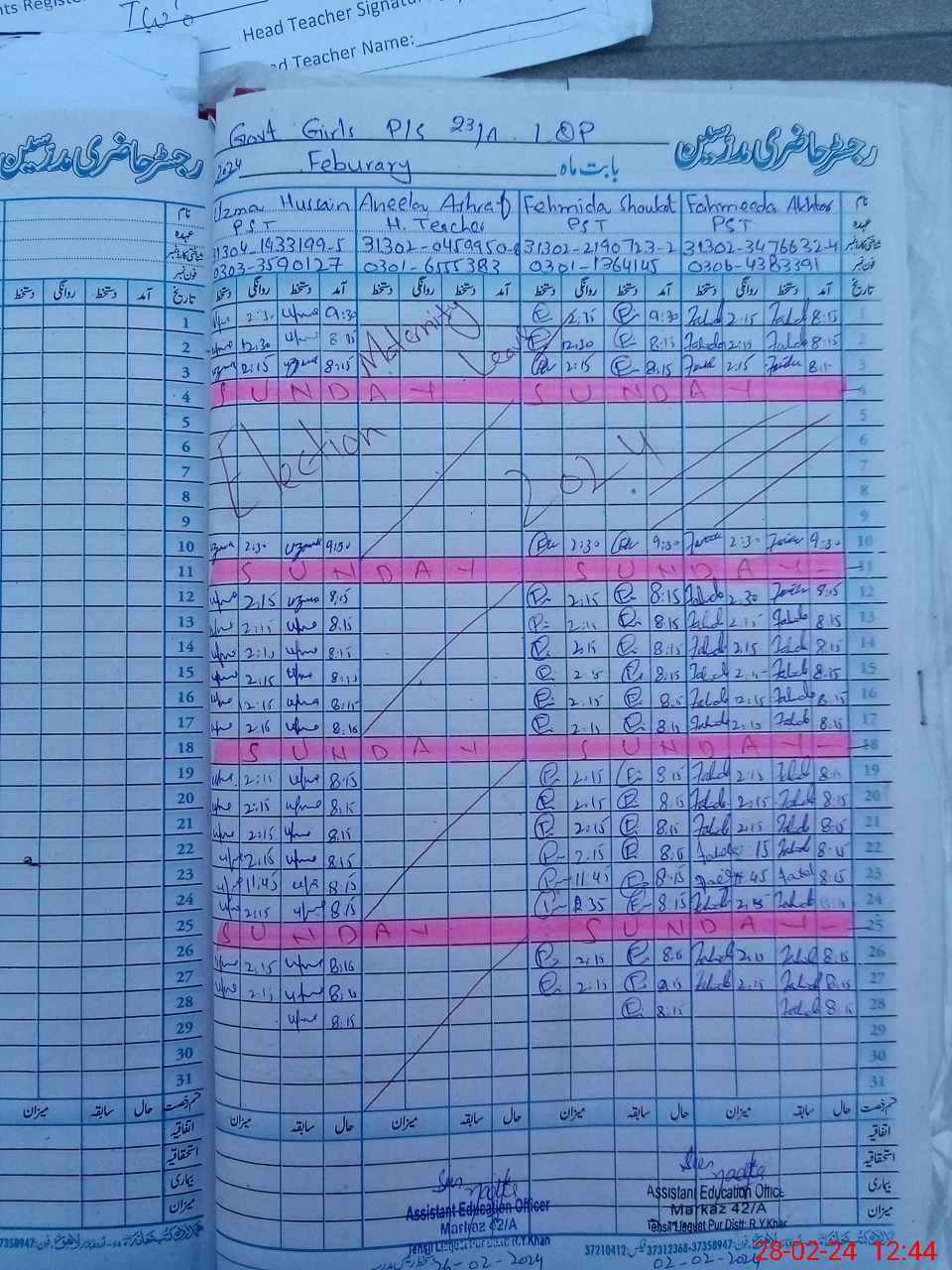 | Name: An**** As**** Designation: (School Headmaster's/Headmistress's) PST Phone/Cell Number: 03**** |