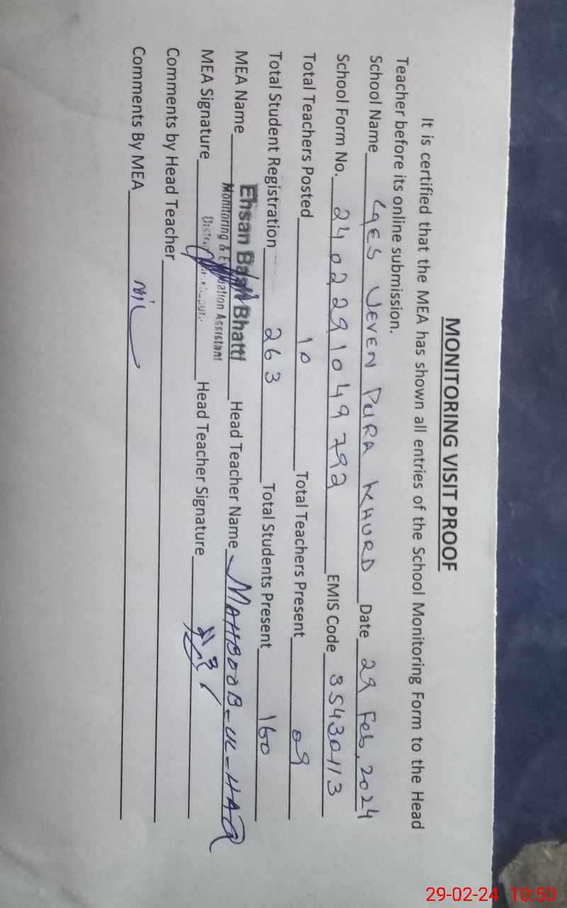 | EMIS Code: 35430113 | Name of School: GES JEVAN PURA KHURD | |||