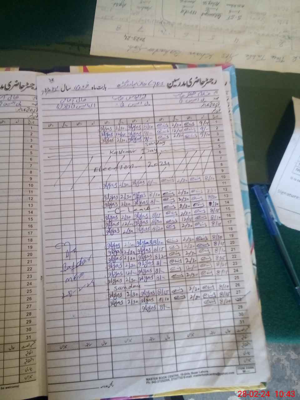 | CNIC | Full Name | Designation | R/C | Absence During Last Calender Month |