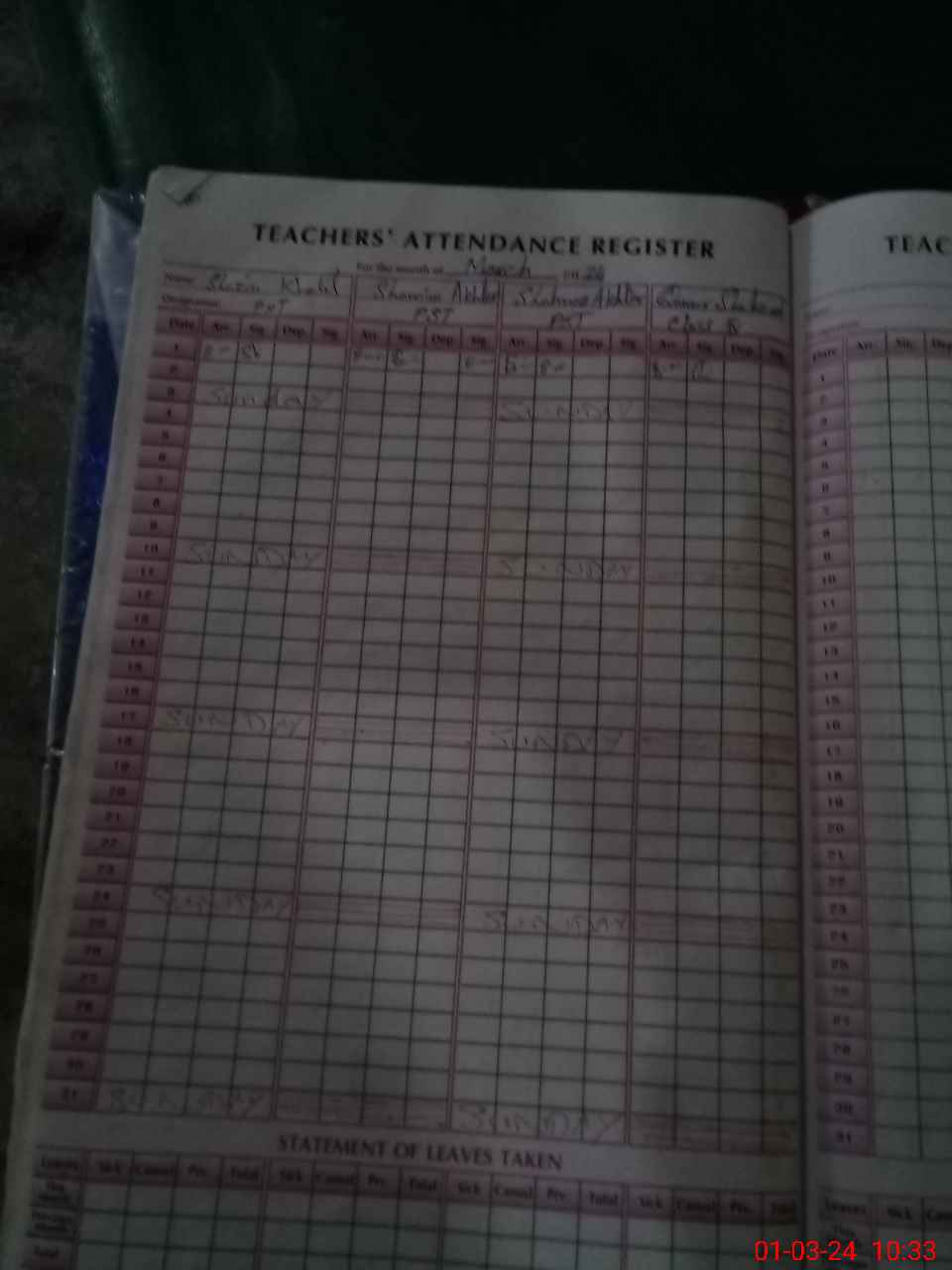 | No. of Students Present - Female | 4 | 0 | 4 | 6 | 8 | 0 | 3 | 3 | 28 | |||||||
