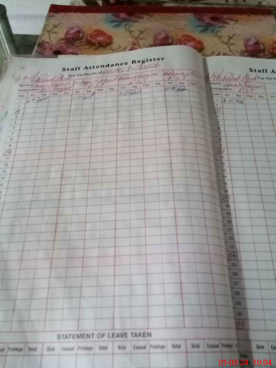 | Leave | Duty | Absent | Maternity | Medical | Ex- Pak |