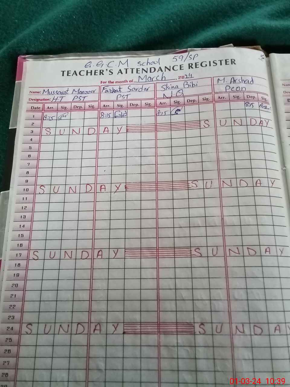 | Name: MU**** MA**** Designation: (School Headmaster's/Headmistress's) PST Phone/Cell Number: 03**** |