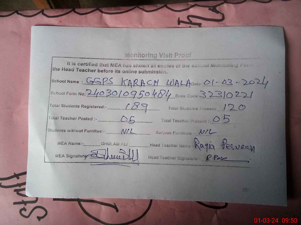 | EMIS Code: 32310221 | Name of School: GGPS KARCH WALA | |||
