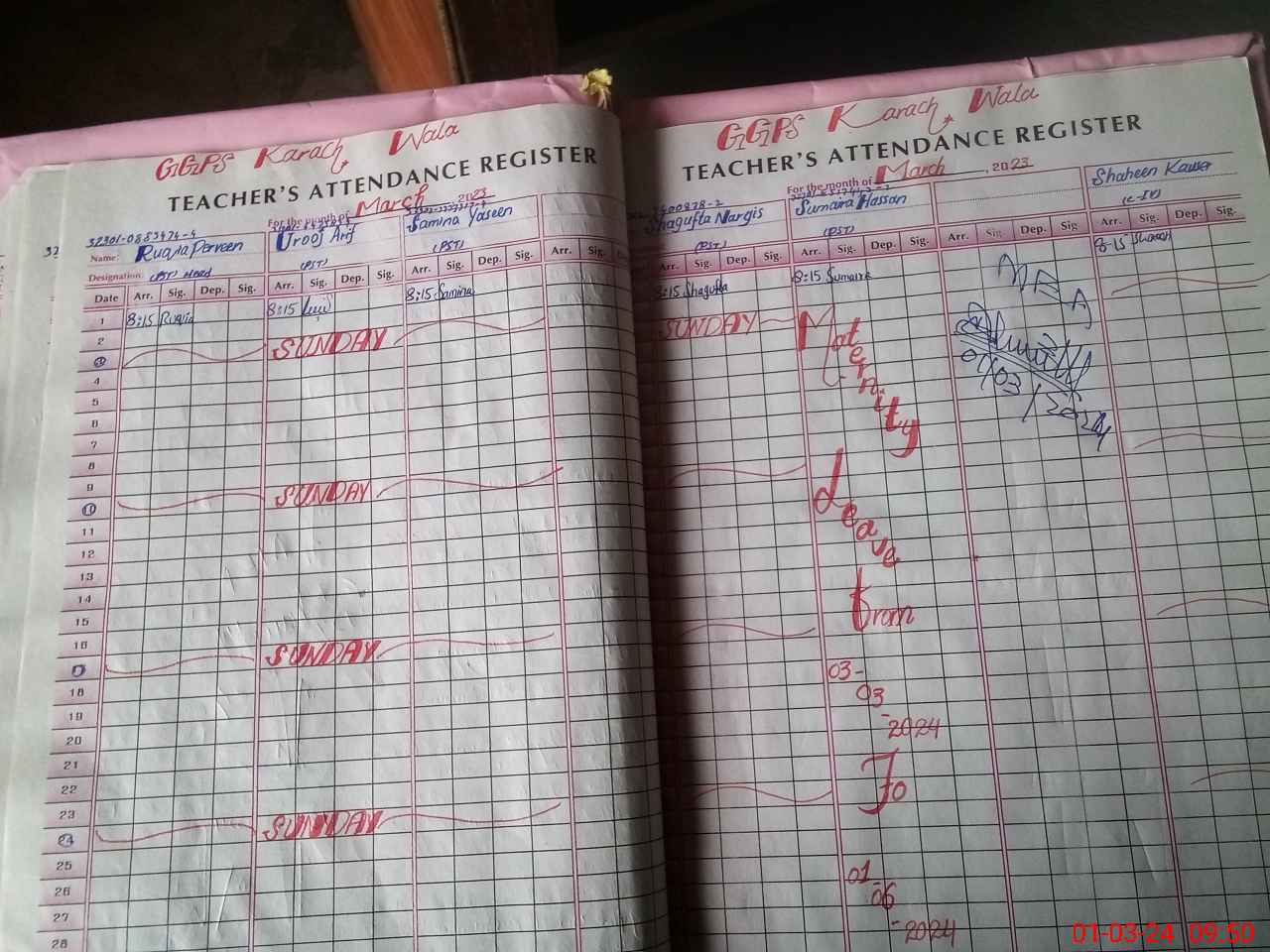 | Leave | Duty | Absent | Maternity | Medical | Ex- Pak |