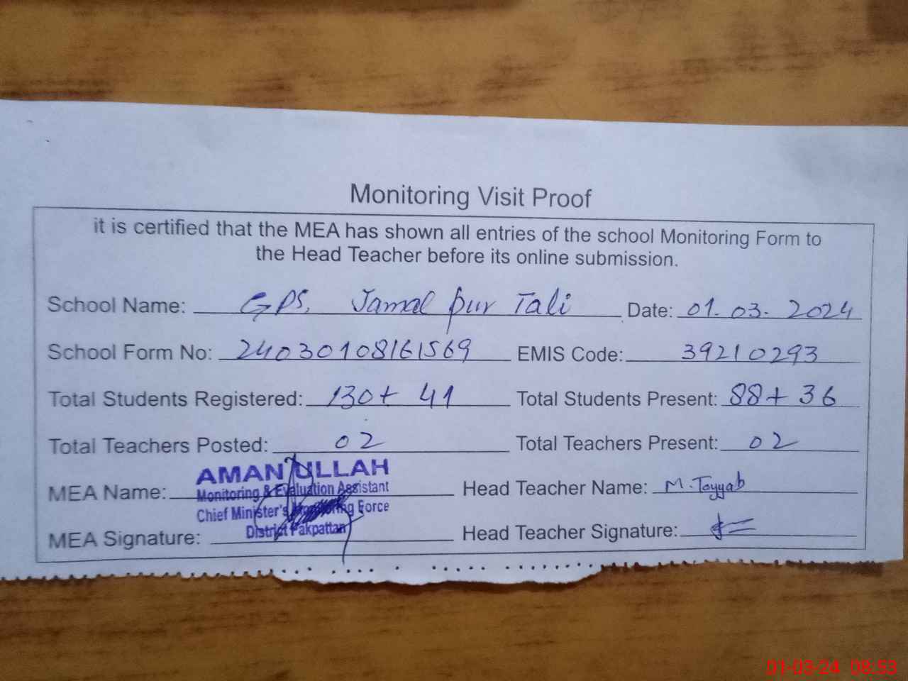 | EMIS Code: 39210293 | Name of School: GPS JAMAL PUR TALI | |||