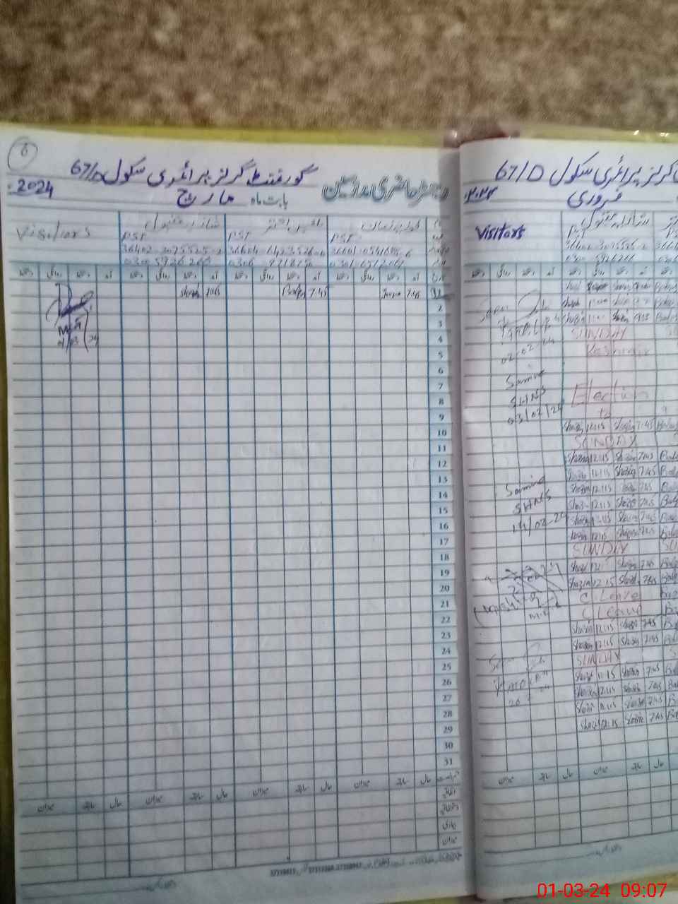 | School Visited by School Health & Nutrition Supervisor (No. of Visits) | 1 | Name1: | Samina Kousar | Name2: | Nil |