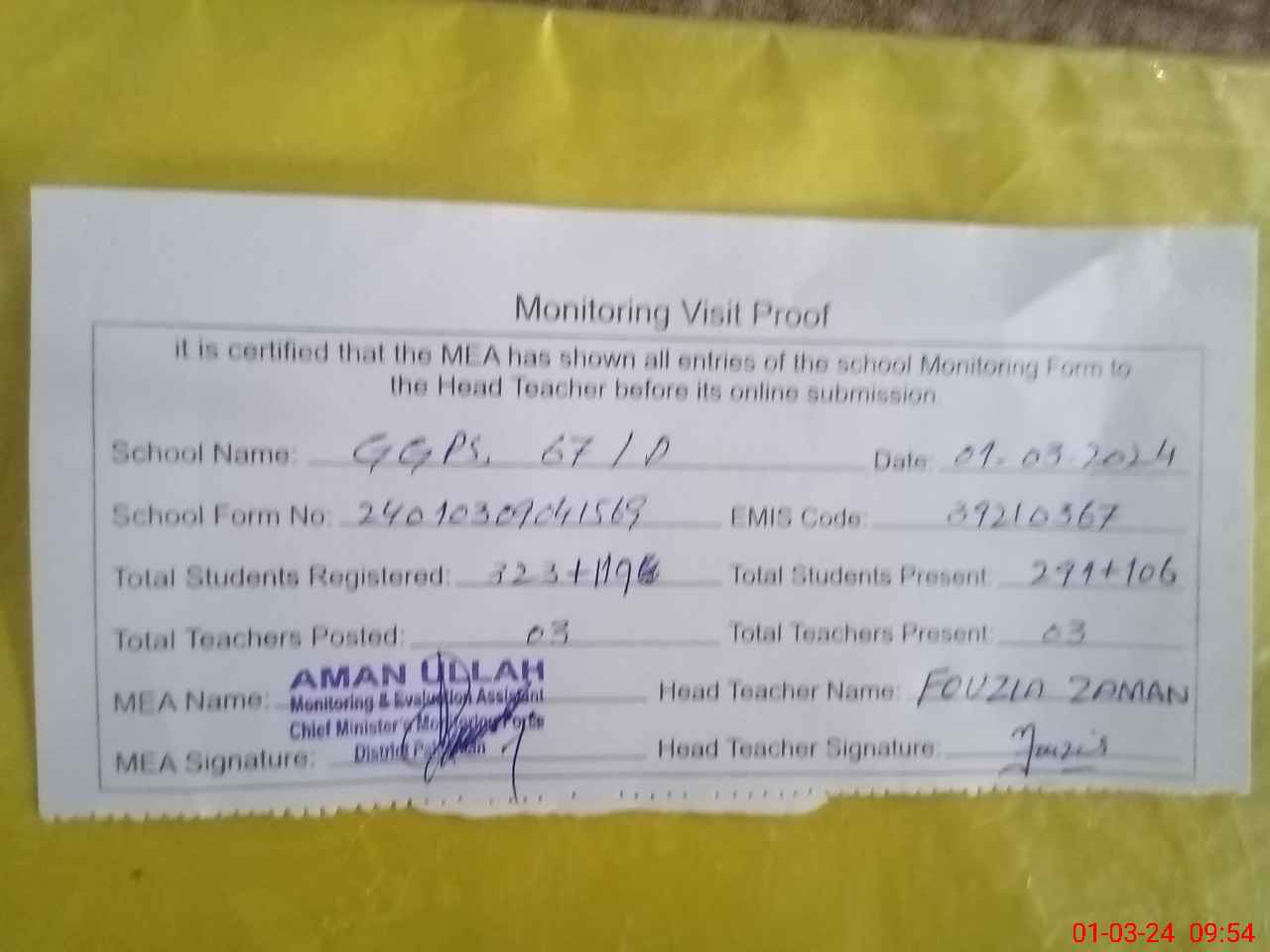 | EMIS Code: 39210367 | Name of School: GGPS 67 D | |||