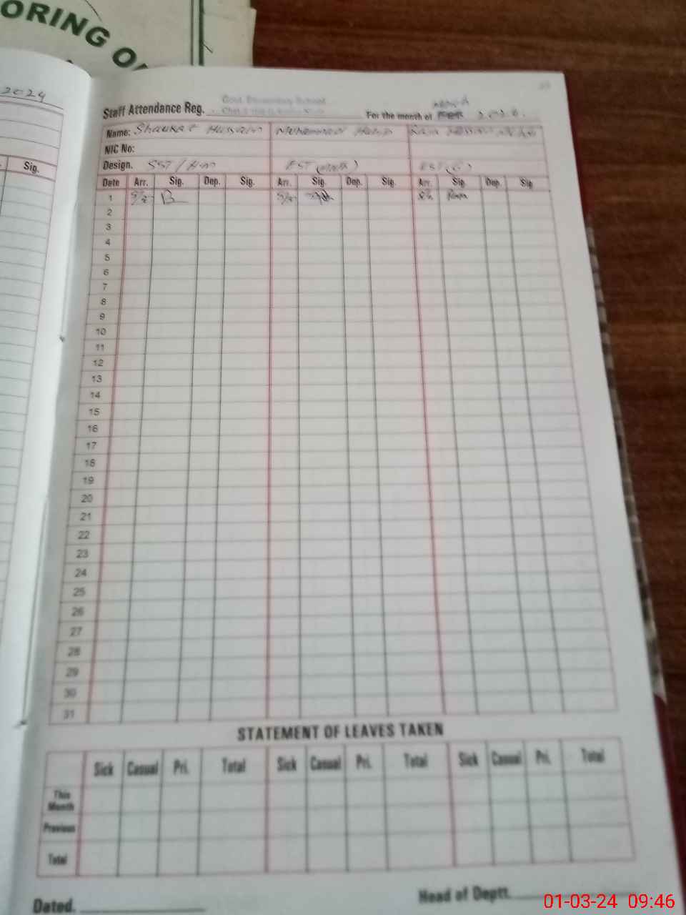 | Name: Mu**** Ha**** Designation: (School Headmaster's/Headmistress's) EST Phone/Cell Number: 03**** |