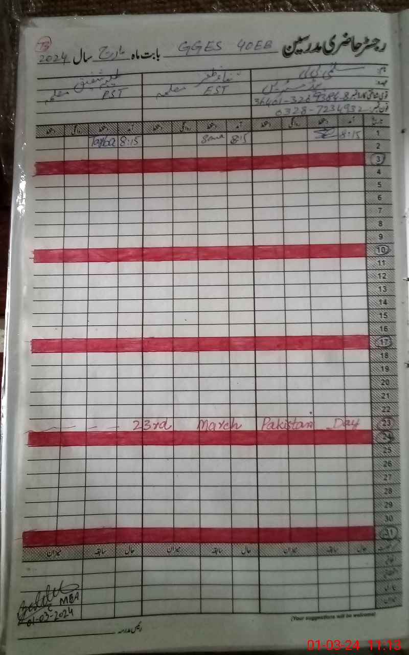 | Name: SA**** ZA**** Designation: (School Headmaster's/Headmistress's) EST (SCI) Phone/Cell Number: 03**** |