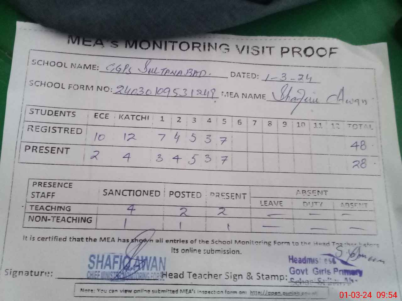 | EMIS Code: 36410339 | Name of School: GGPS SULTAN ABAD, KABIRWALA | |||