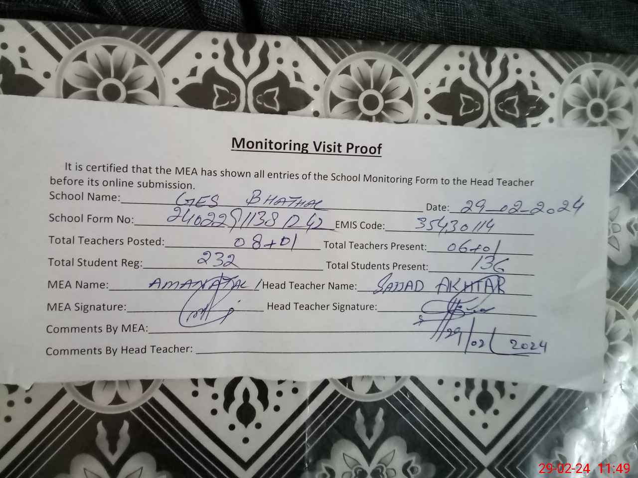 | EMIS Code: 35430114 | Name of School: GES BHATTAL | |||