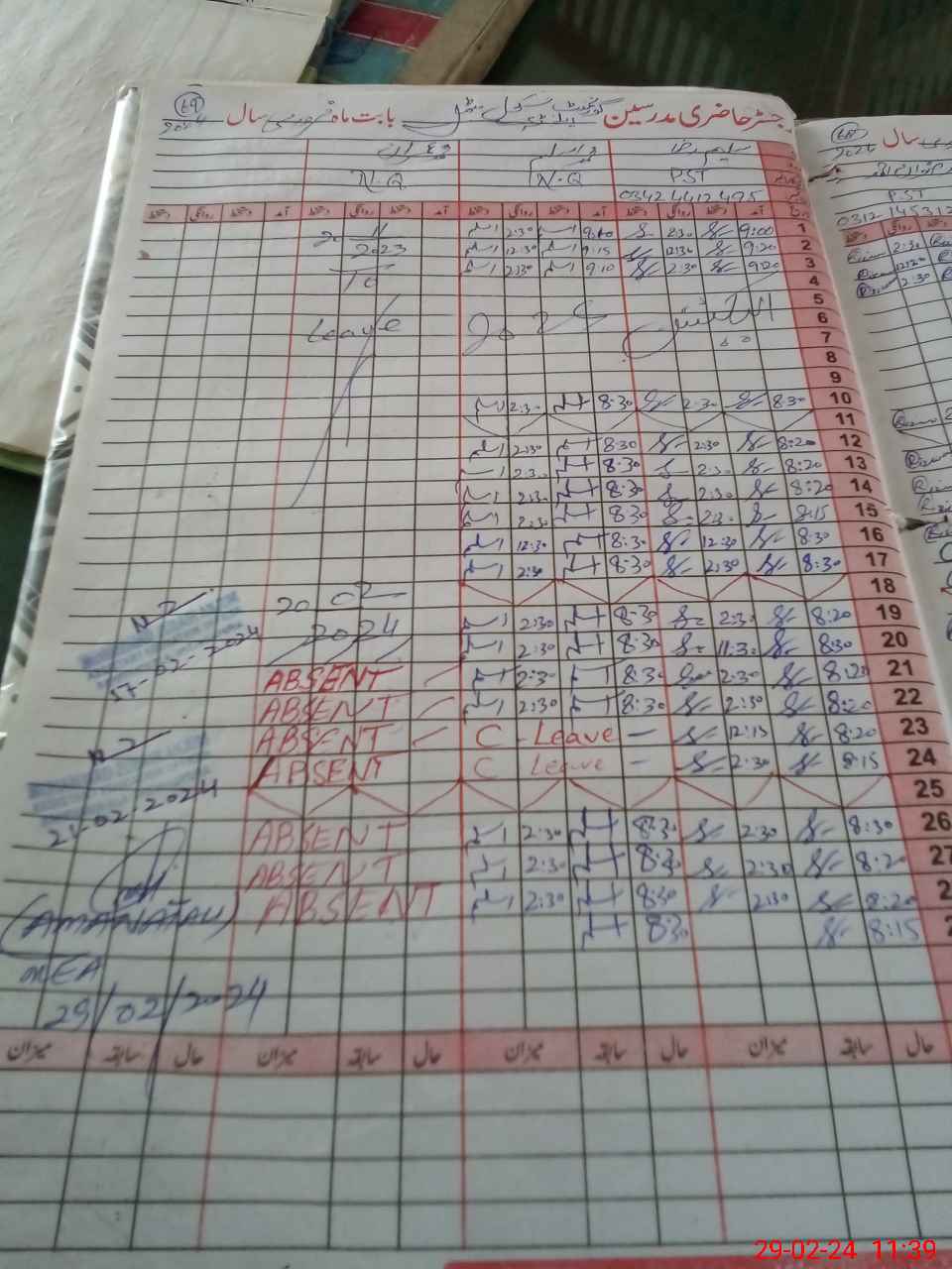 | 00**** | Mu**** Im**** | NIBE QASID | Regular | 0 | 31 | 0 | 0 | 0 | 0 | 0 | 0 | 0 | Absent (Un-Authorized) |