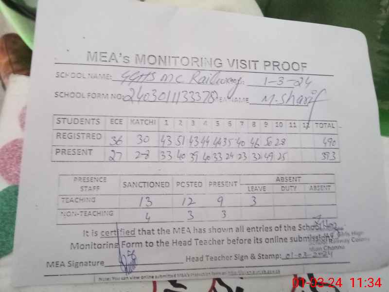 | Certified that this School was Inspected by the Undersigned MEA/DMO Today and the Information Stated Above is as Per Record. | |||||