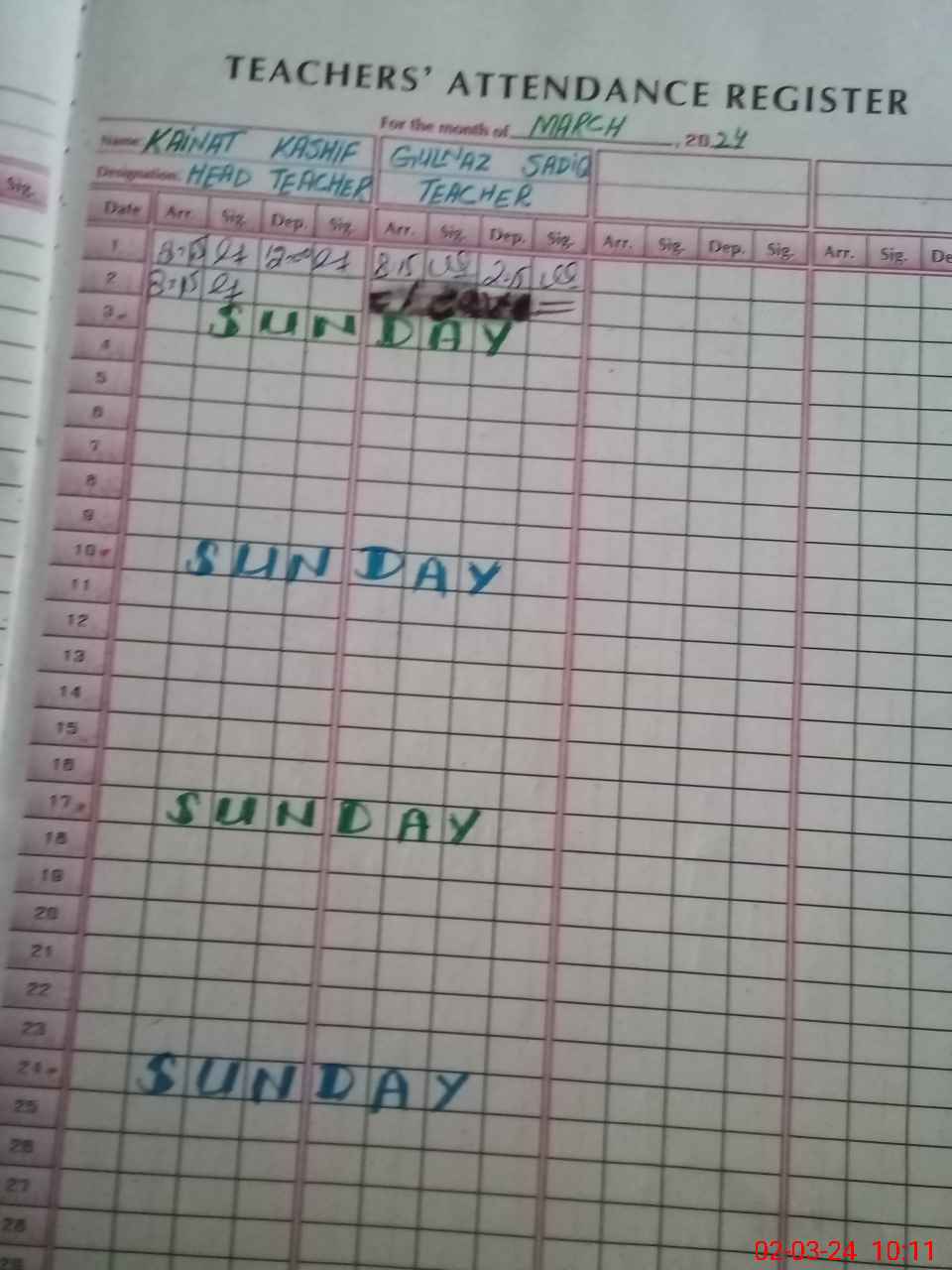 | CNIC | Full Name | Designation | R/C | Absence During Last Calender Month |
