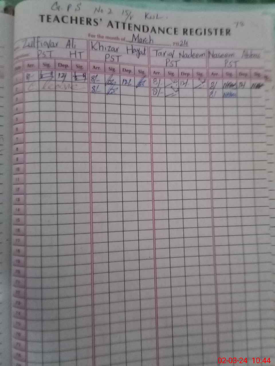 | Name: Zu**** Al**** Designation: (School Headmaster's/Headmistress's) PST Phone/Cell Number: 03**** |