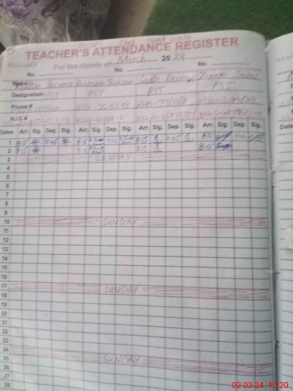 | Name: KH**** PE**** Designation: (School Headmaster's/Headmistress's) PST Phone/Cell Number: 03**** |