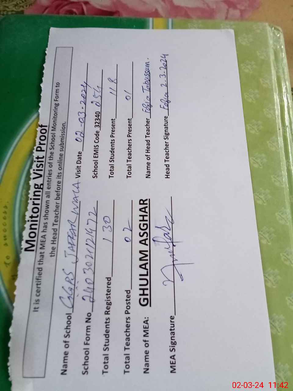 | EMIS Code: 32340254 | Name of School: GGPS JAFFER WALA | |||