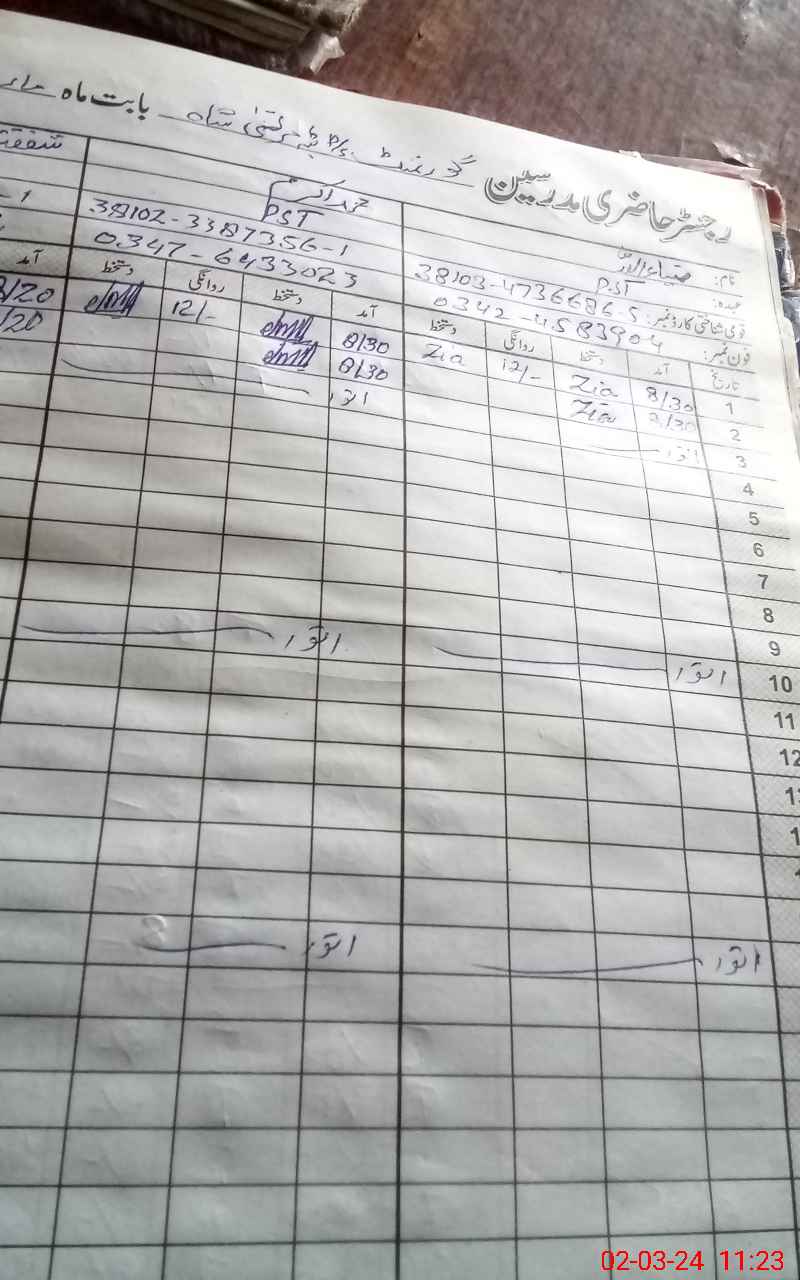 | Name: Sh**** Ab**** Designation: (School Headmaster's/Headmistress's) PST Phone/Cell Number: 03**** |