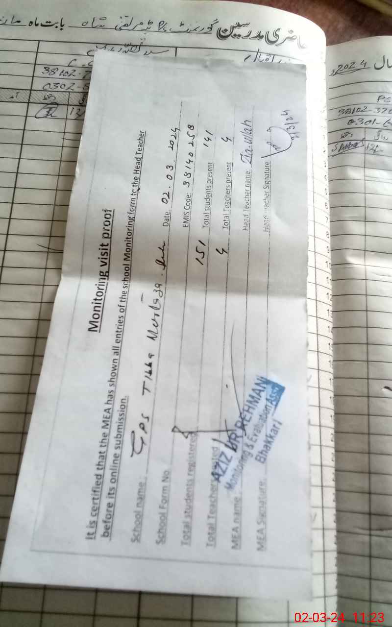 | EMIS Code: 38140258 | Name of School: GPS TIBBA MURTAZA SHAH | |||