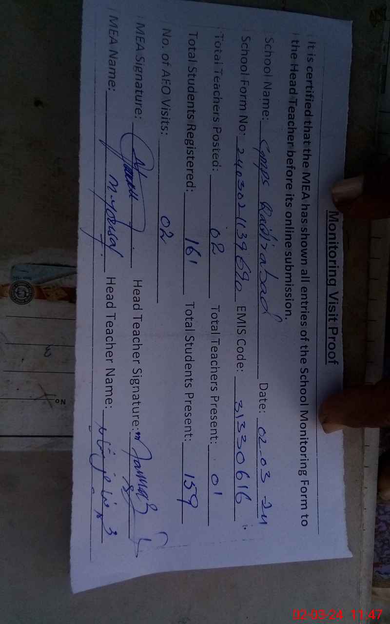 | EMIS Code: 31330616 | Name of School: GMPS QADIR ABAD BASTI | |||