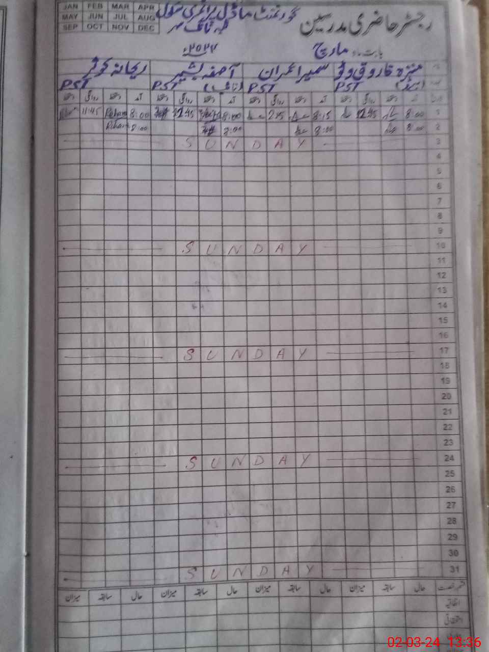 | CNIC | Full Name | Designation | R/C | Absence During Last Calender Month |
