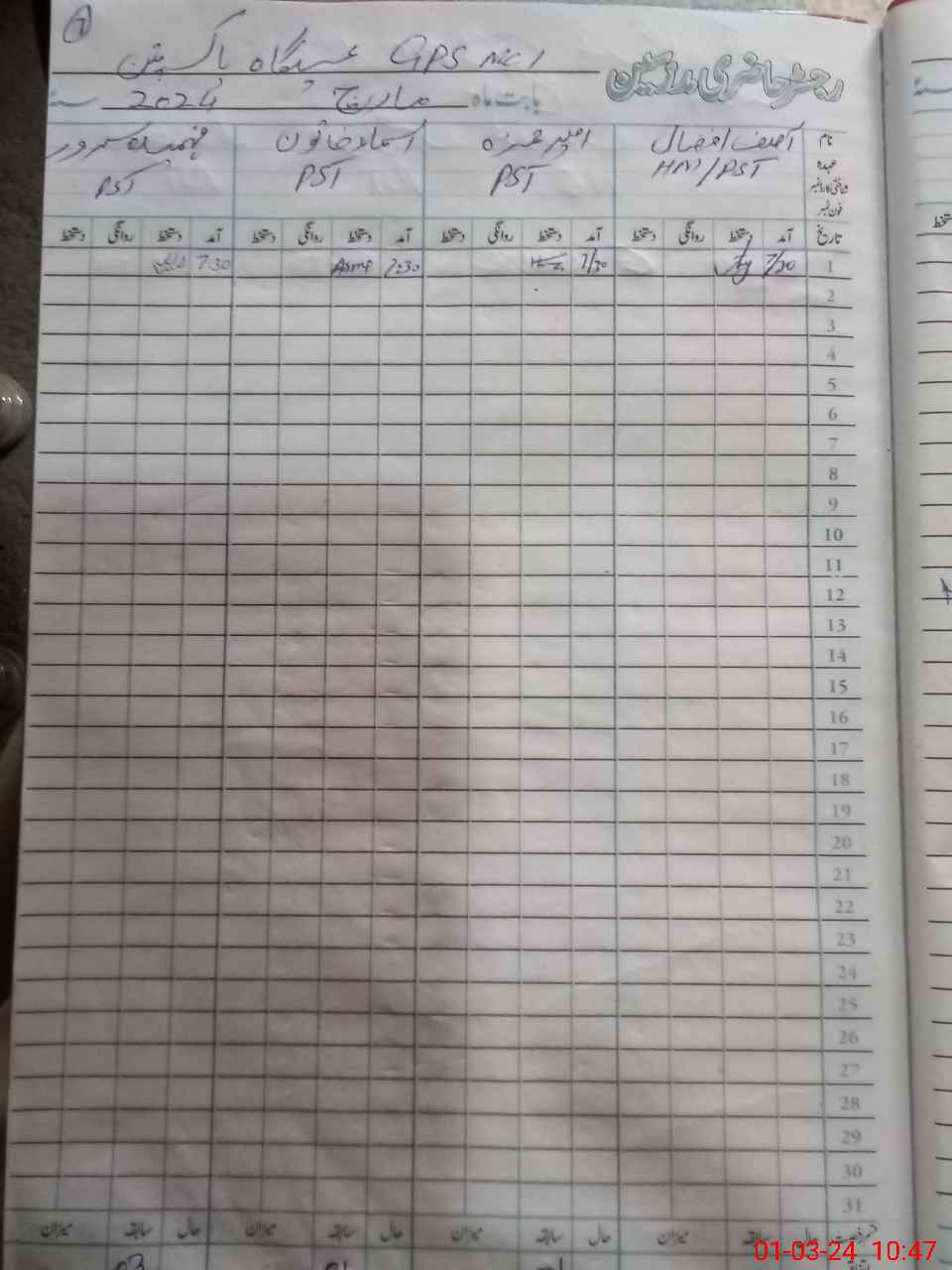 | CNIC | Full Name | Designation | R/C | Absence During Last Calender Month |