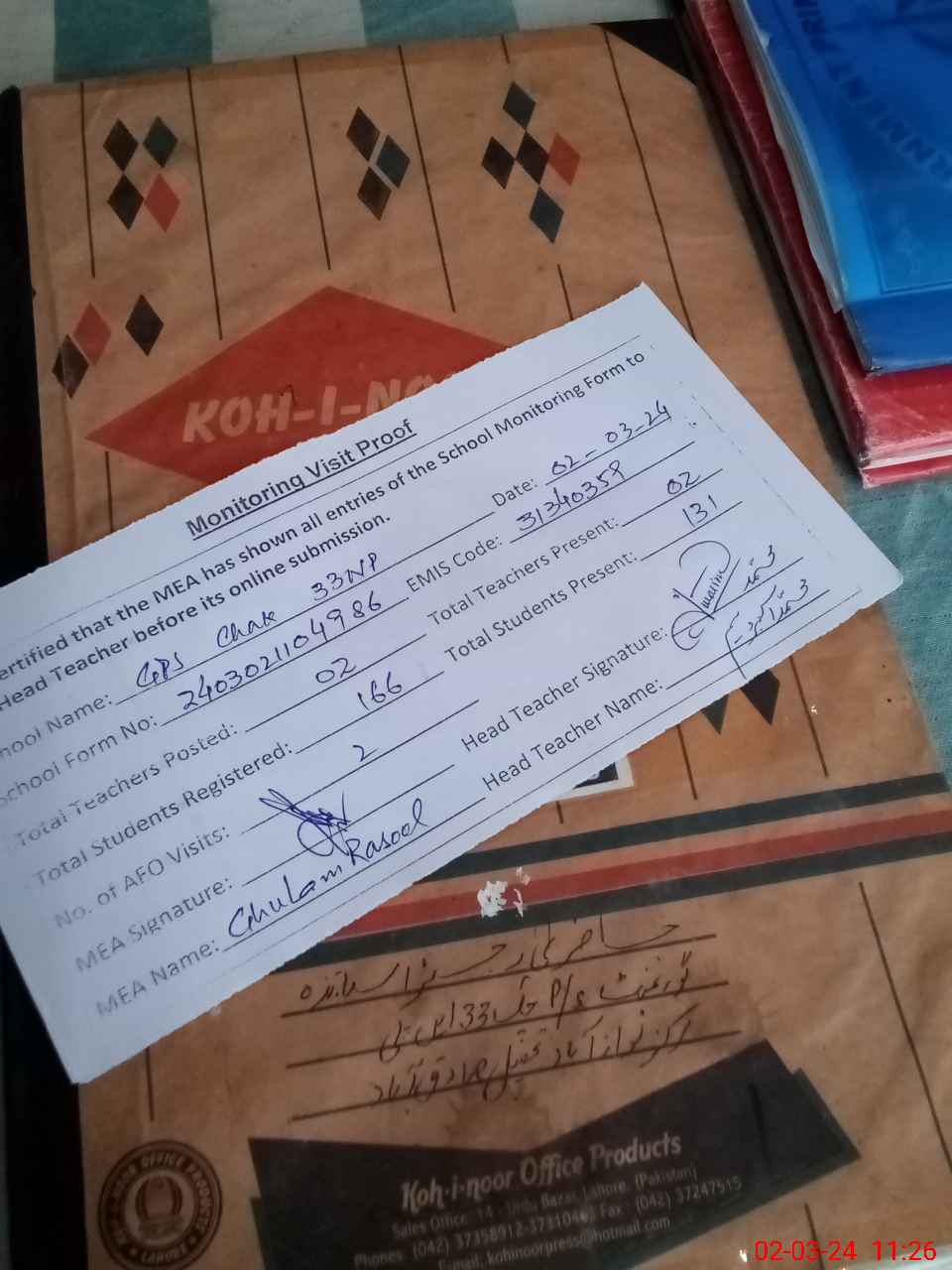 | EMIS Code: 31340359 | Name of School: GPS CHAK NO 33 NP | |||