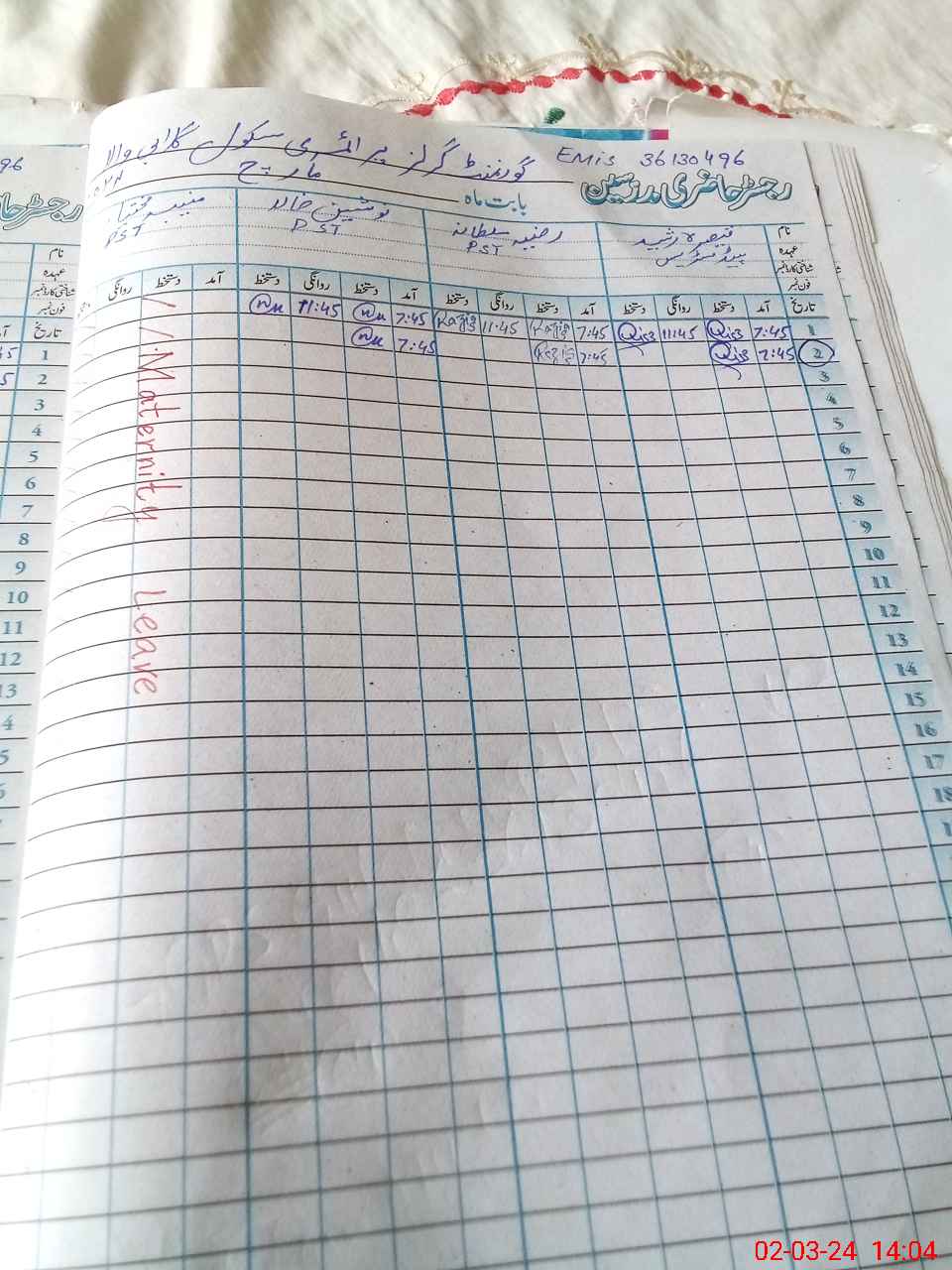 | Name: No**** Kh**** Designation: (School Headmaster's/Headmistress's) PST Phone/Cell Number: 03**** |