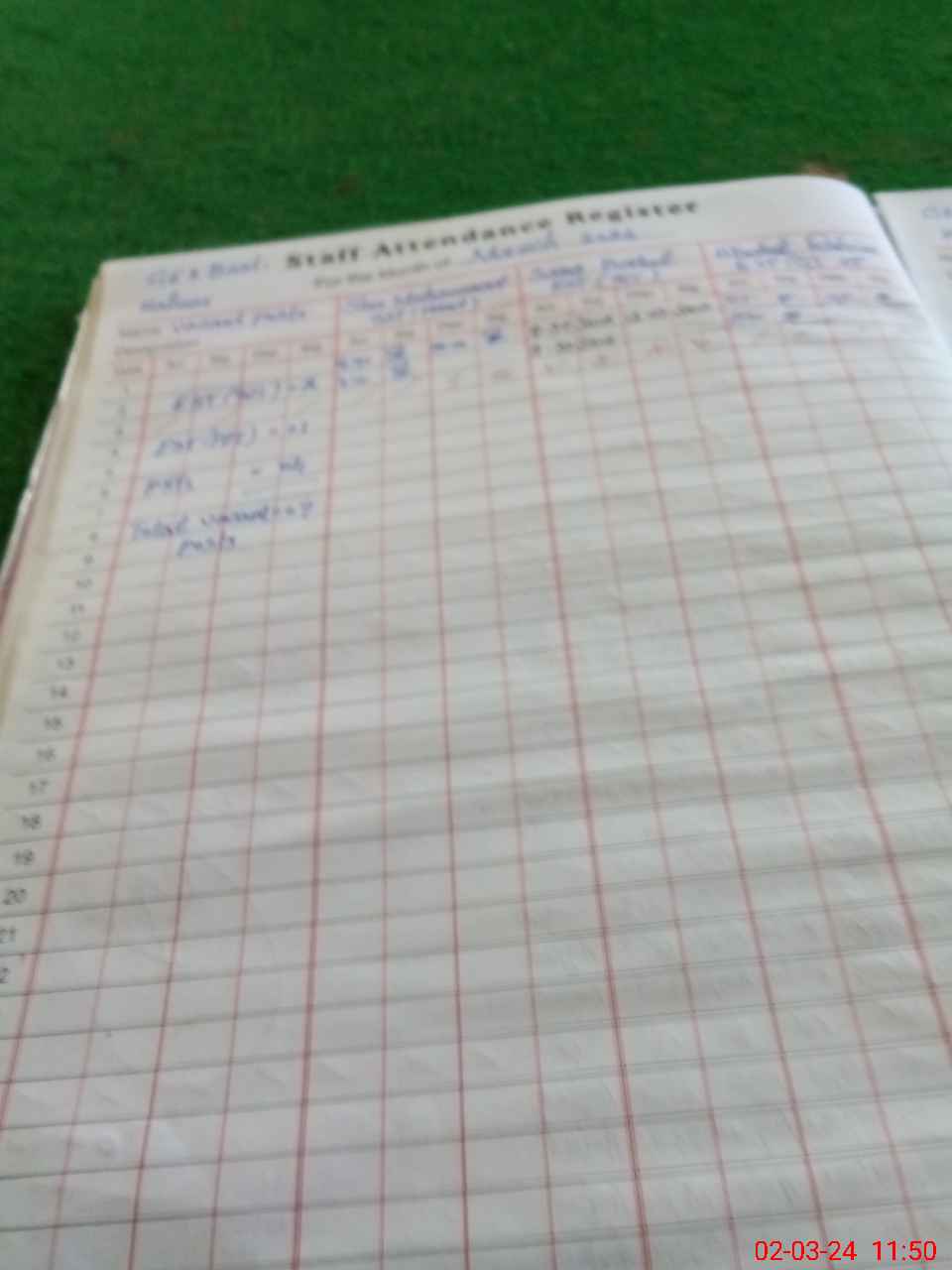 | No. of Students Present - Male | 15 | 0 | 70 | 14 | 23 | 13 | 11 | 22 | 7 | 11 | 9 | 195 | ||||