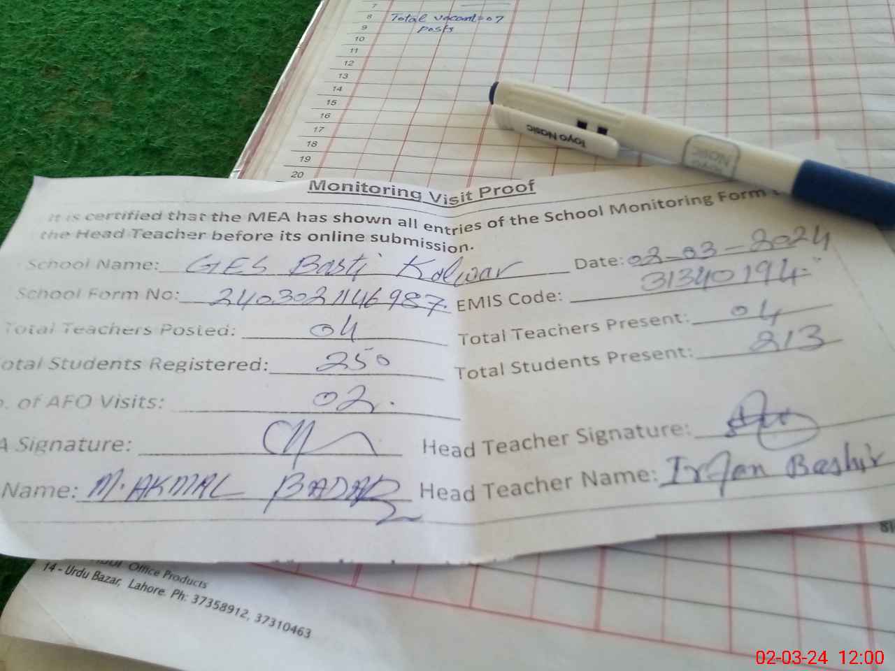 | EMIS Code: 31340194 | Name of School: GES BASTIKALWAR BASTI KALWAR | |||