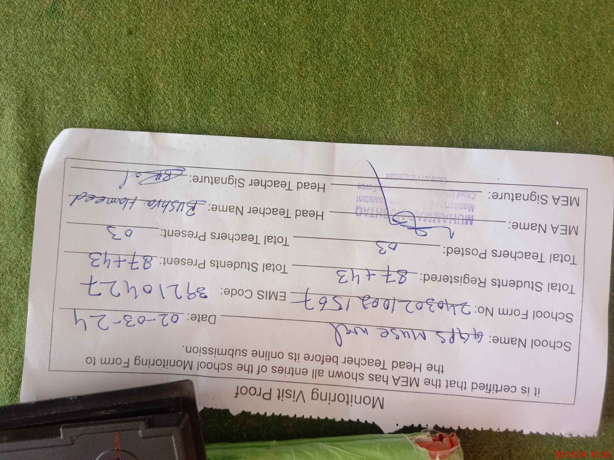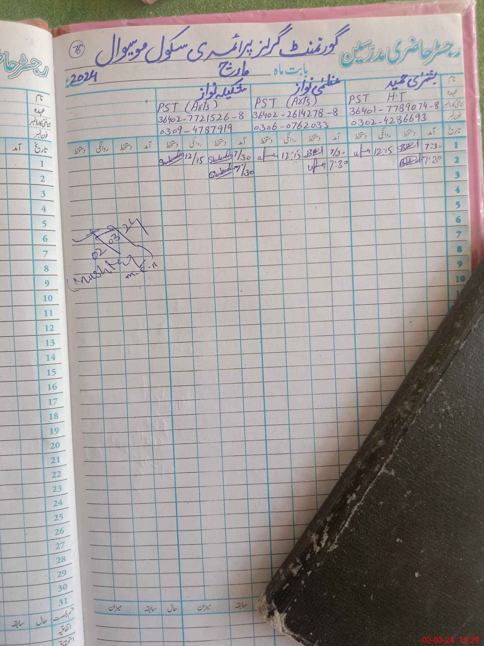 | Name: Uz**** Na**** Designation: (School Headmaster's/Headmistress's) PST Phone/Cell Number: 03**** |