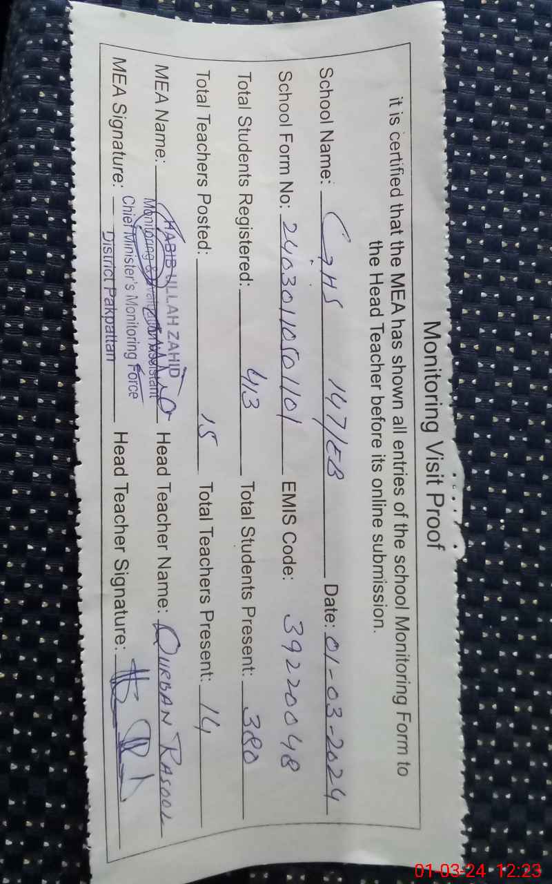 | EMIS Code: 39220048 | Name of School: GHS 147 EB | |||