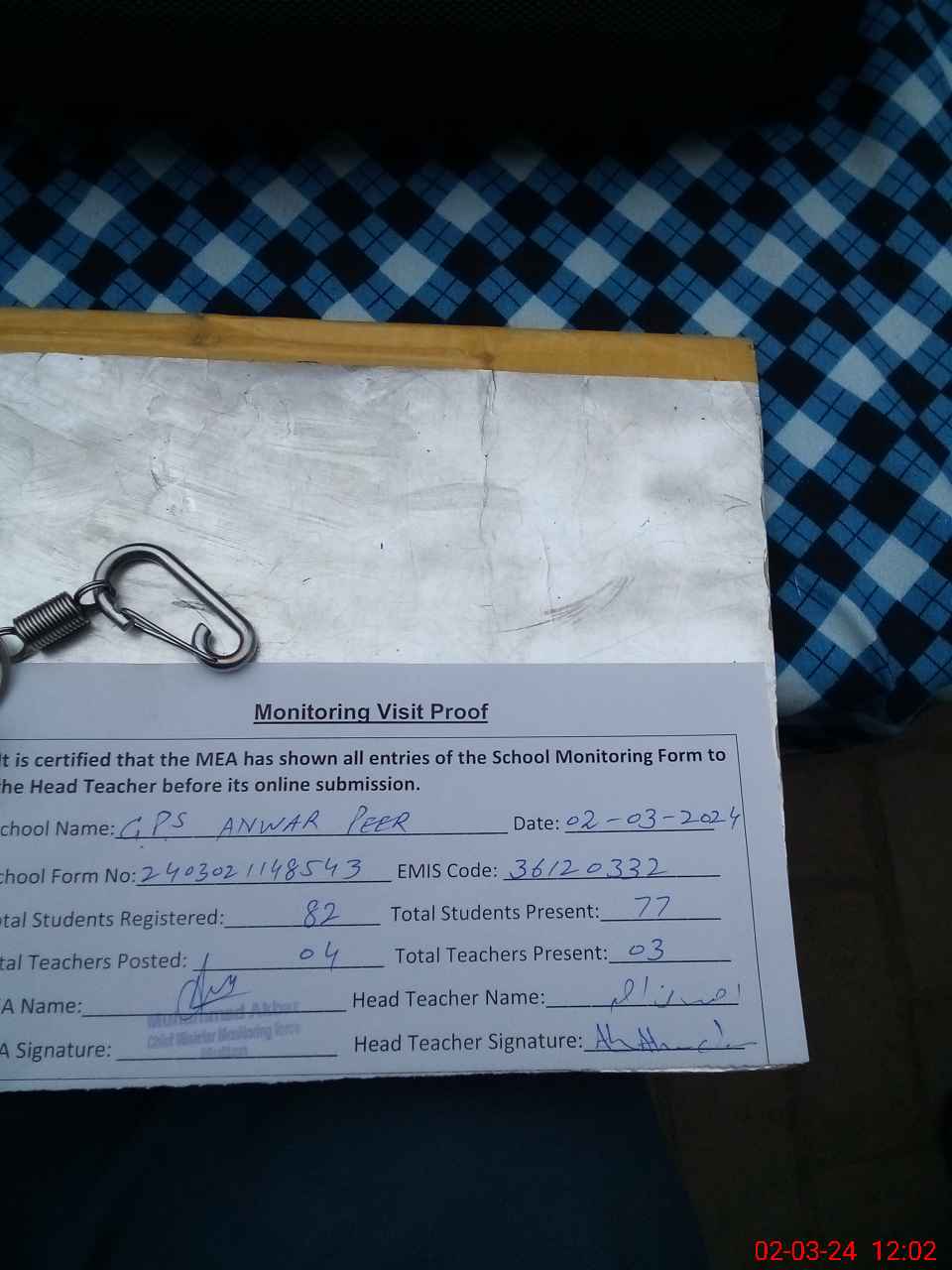 | EMIS Code: 36120332 | Name of School: GPS ANWAR PEER SHUJABAD | |||