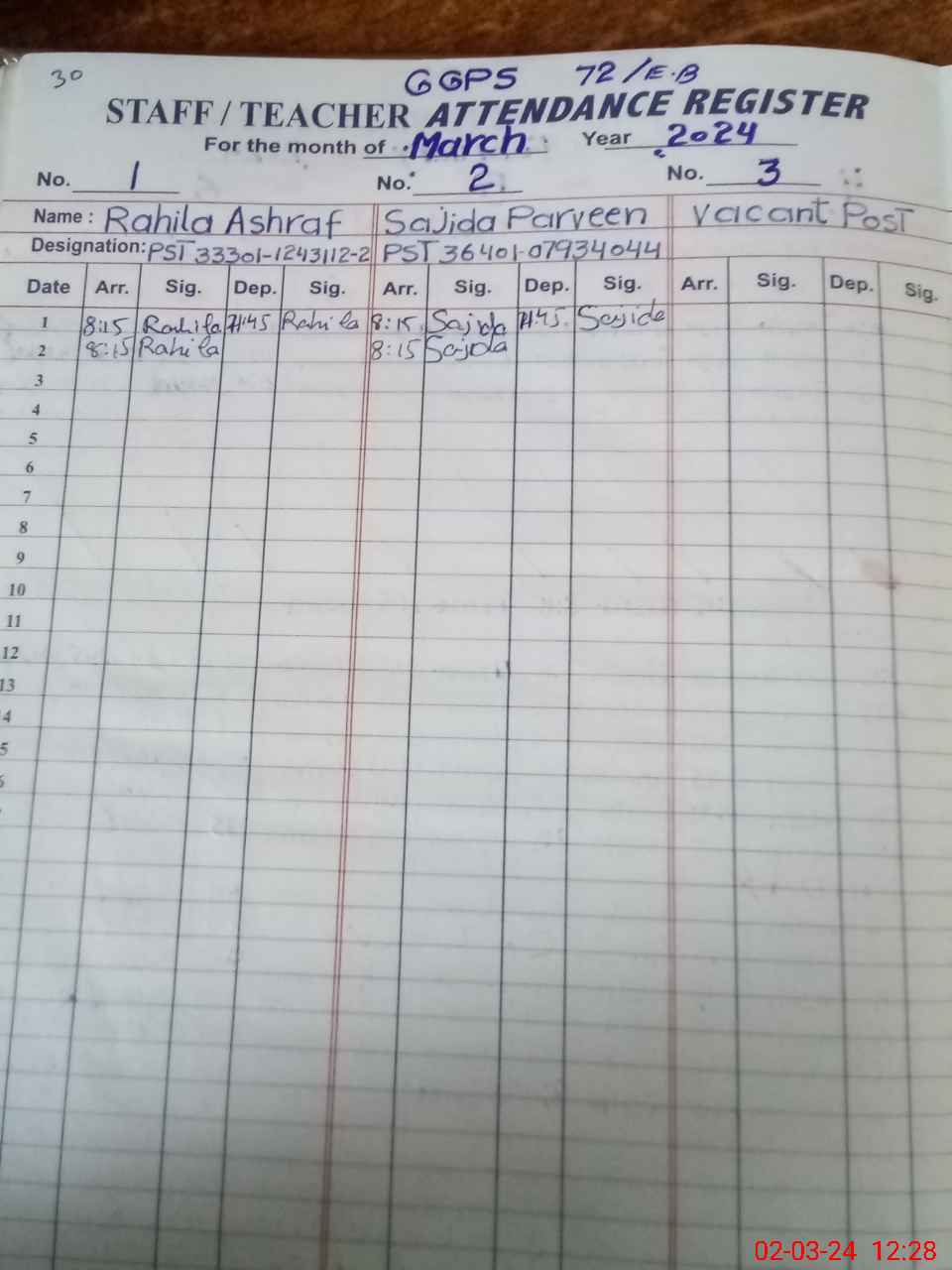 | Name: RA**** AS**** Designation: (School Headmaster's/Headmistress's) PST Phone/Cell Number: 03**** |