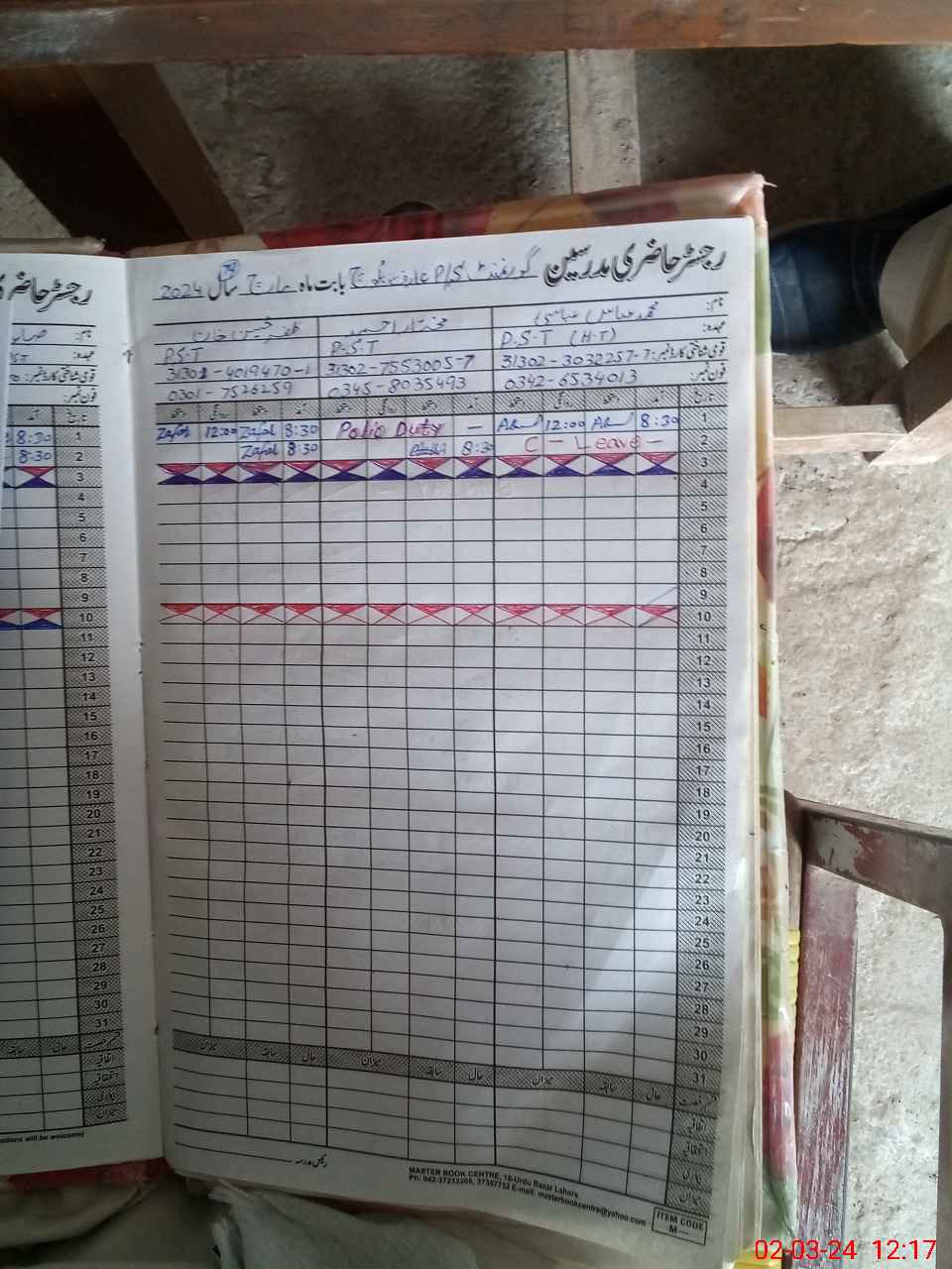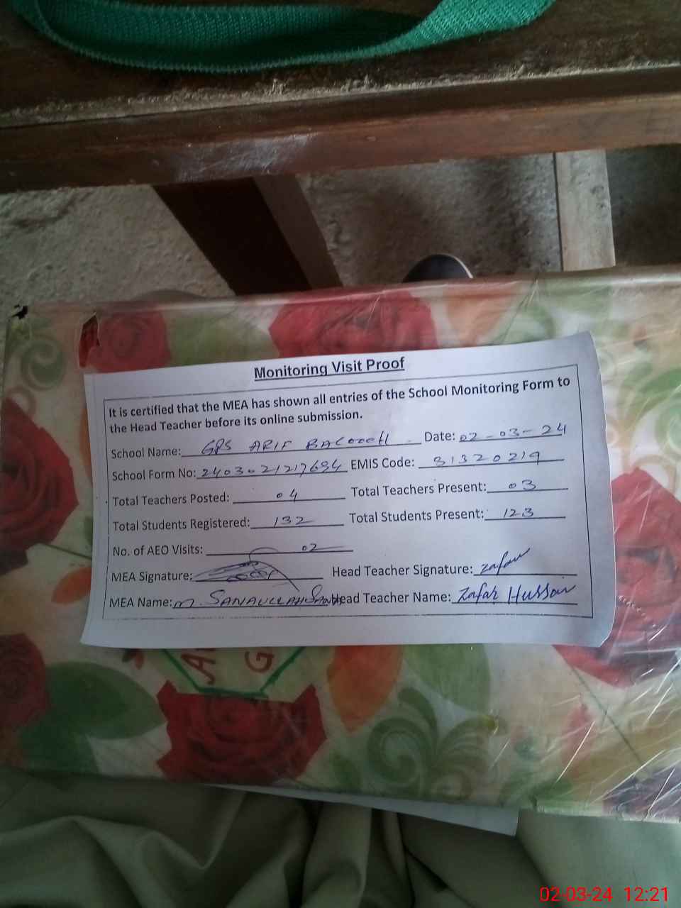 | EMIS Code: 31320219 | Name of School: GPS AARIF BLOCH | |||