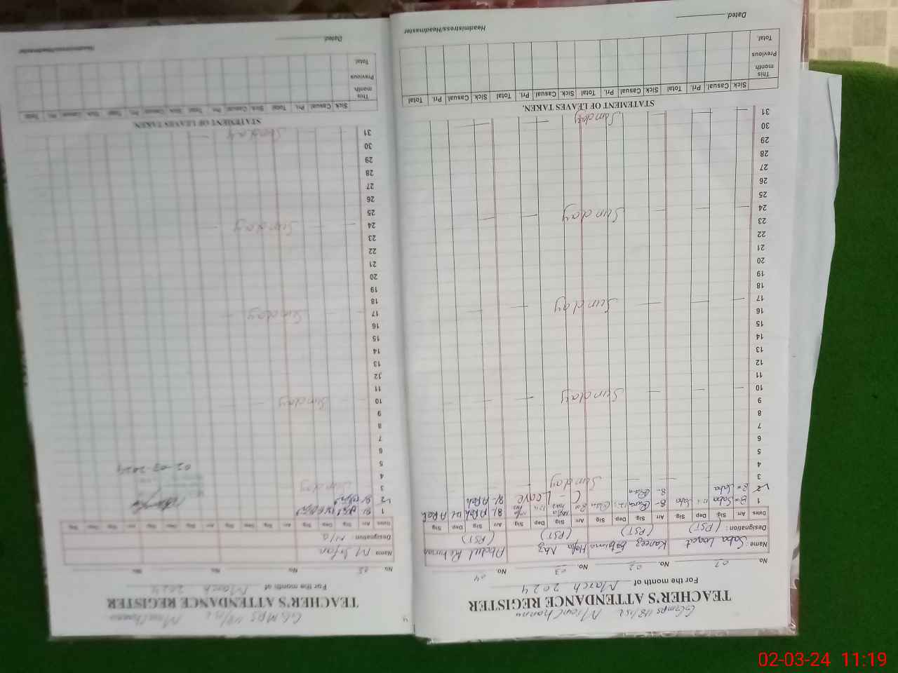 | CNIC | Full Name | Designation | R/C | Absence During Last Calender Month |