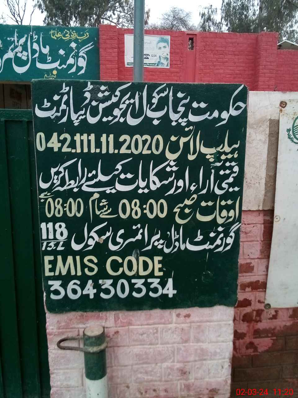 | EMIS Code: 36430334 | Name of School: GGMPS 118/15-L, MIAN CHANNU | |||