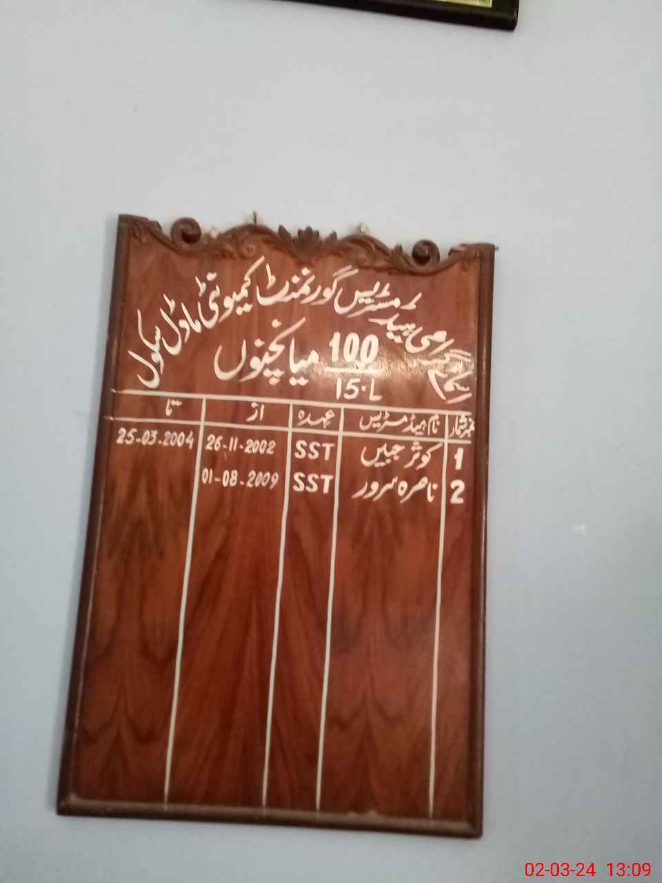 | EMIS Code: 36430296 | Name of School: GCMS 100/15-L SABQA, MIAN CHANNU | |||