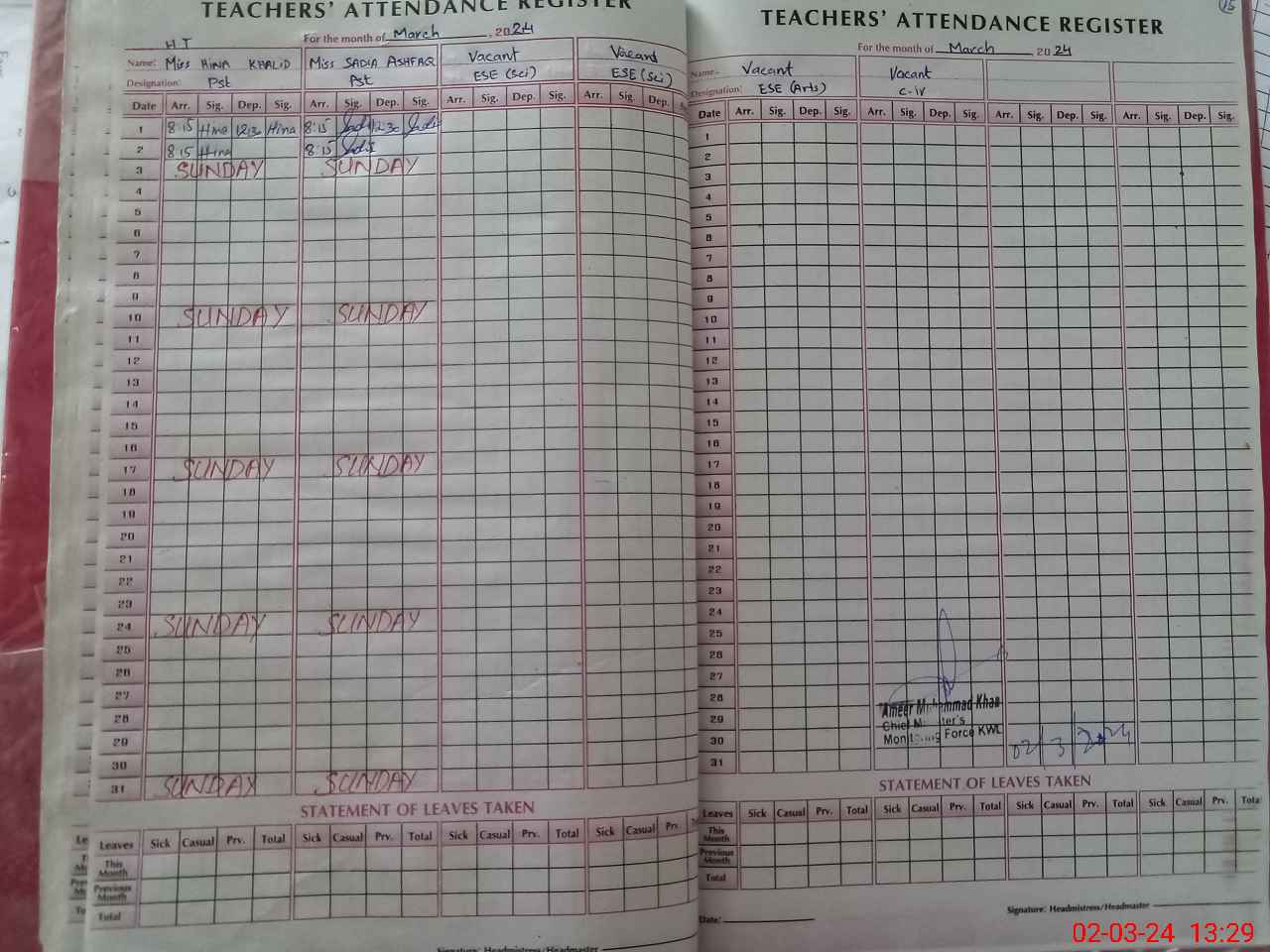 | Name: Hi**** Kh**** Designation: (School Headmaster's/Headmistress's) PST Phone/Cell Number: 03**** |