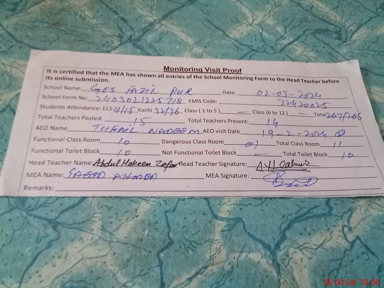 | EMIS Code: 32420025 | Name of School: GES FAZILPUR | |||